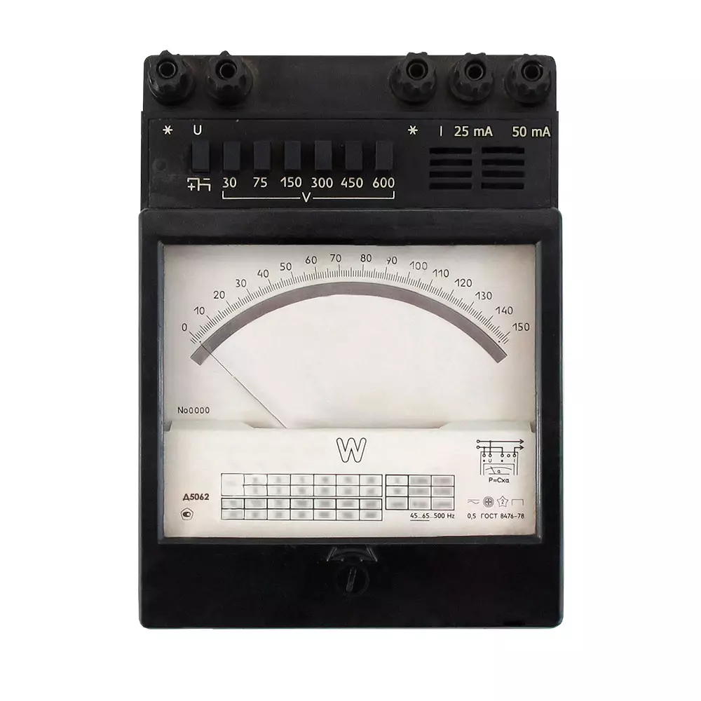 Прибор поддерживает номинальные токи 5 и 10 ампер, что позволяет ему работать в системах с разными уровнями тока и адаптироваться к широкому спектру электрических условий. Номинальное напряжение ваттметра охватывает значения 30, 75, 150, 300, 450 и 600 вольт, что предоставляет дополнительную гибкость в настройках и позволяет прибору использоваться в системах с различными уровнями напряжения.
