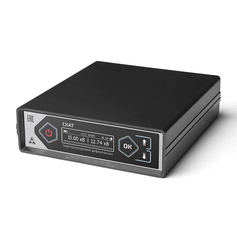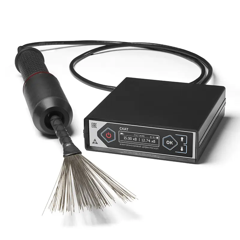 Электроискровой дефектоскоп "Техно‑НДТ СКАТ" создан для проверки качества диэлектрических покрытий на металле без их разрушения. Он быстро находит трещины, сколы и поры в покрытиях толщиной от 0,025 до 26 мм, что делает его очень полезным в производстве и на стройке.