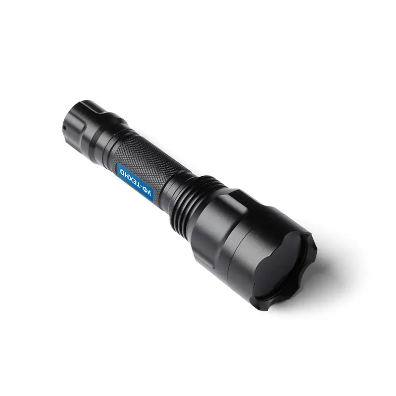 У фонаря можно настроить фокусировку: узкий луч (диаметр 50 мм, освещенность 15 000-20 000 мкВт/см²) или широкий (диаметр 80 мм, освещенность 5000-7200 мкВт/см²). Алюминиевый отражатель и специальное стекло обеспечивают равномерный свет и хорошую видимость дефектов.
