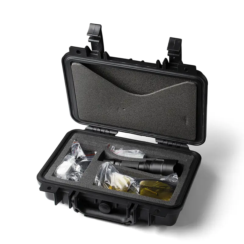 Корпус сделан из легкого и прочного авиационного алюминия (вес всего 118 г без аккумулятора), защищен от пыли и влаги (IP65). Работает от аккумулятора (3,7 В, 3500 мА·ч), которого хватает минимум на 4 часа. Яркость почти не падает - не больше 5 % за 3 часа, так что результаты будут стабильными все время. Благодаря компактному размеру (155 × 44 мм) и широкому диапазону рабочих температур (от -30 до +50 °C) фонарь удобно брать с собой на объекты.