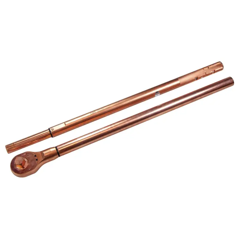 Искробезопасный динамометрический ключ CMTN-1200 (омеднённый) предназначен для профессиональной затяжки особо ответственных резьбовых соединений в условиях взрывоопасности. С диапазоном усилий 400-1200 Нм и ценой деления 8 Нм он обеспечивает точный контроль момента с погрешностью ±4 %. Изготовленный из легированной стали с омеднённым покрытием, инструмент полностью исключает риск искрообразования. Трещотка и посадочный квадрат 1″ повышают удобство работы даже в стеснённых пространствах. При длине 1530 мм и массе 8,5 кг ключ сохраняет эргономичность. Работает при температуре от -10 до +40 °C и влажности до 85 %, что делает его незаменимым в нефтегазовой отрасли, химическом производстве и тяжёлом машиностроении, где требуются экстремально высокие моменты затяжки