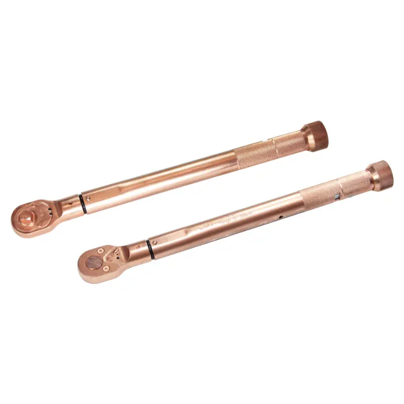 Искробезопасный динамометрический ключ предельного типа CMTN‑5 с омеднённым покрытием - незаменимый инструмент для точных работ в потенциально взрывоопасных средах. Благодаря диапазону усилий от 1 до 5 Нм и цене деления 0,05 Нм обеспечивается прецизионная затяжка с погрешностью не более ±4 %. Компактные габариты (187 мм в длину) и малый вес (180 г) в сочетании с трещоткой и посадочным квадратом 1/4″ делают ключ удобным для работы в ограниченном пространстве. Изготовленный из легированной стали с защитным омеднённым слоем, он исключает образование искр при эксплуатации. Инструмент сохраняет работоспособность при температуре от -10 до +40 °C и влажности до 85 %, что позволяет использовать его в нефтегазовой отрасли, химической промышленности и других сферах с повышенными требованиями к пожарной безопасности.