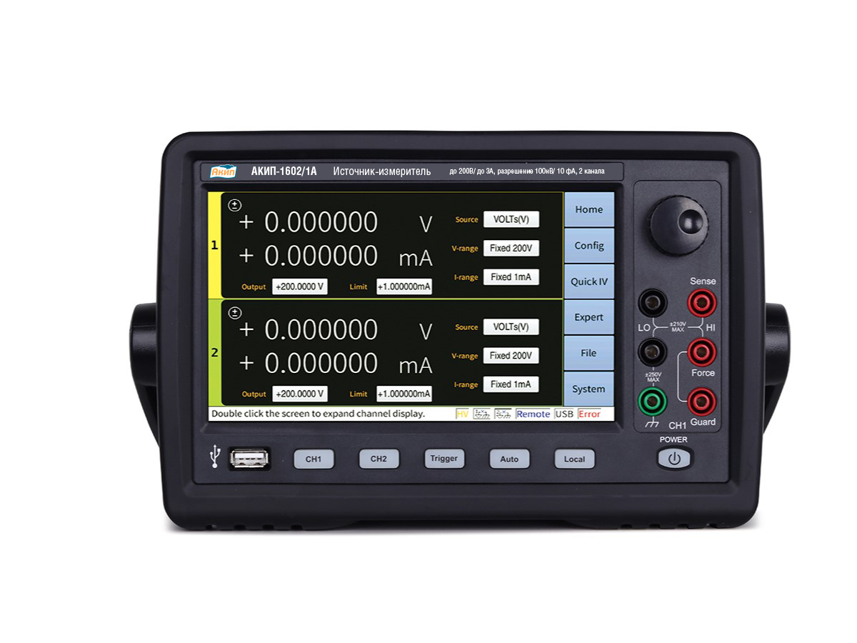 Источник-измеритель АКИП-1602/1 - это высокоточный прибор, предназначенный для генерации и измерения электрических сигналов. Он оснащен одним каналом, который позволяет воспроизводить напряжение в диапазоне от ±0,1 микровольта до ±210 вольт, а также ток в диапазоне от ±10 фемтоампер до ±3,3 ампера постоянного тока и до ±10,5 ампера импульсного тока.