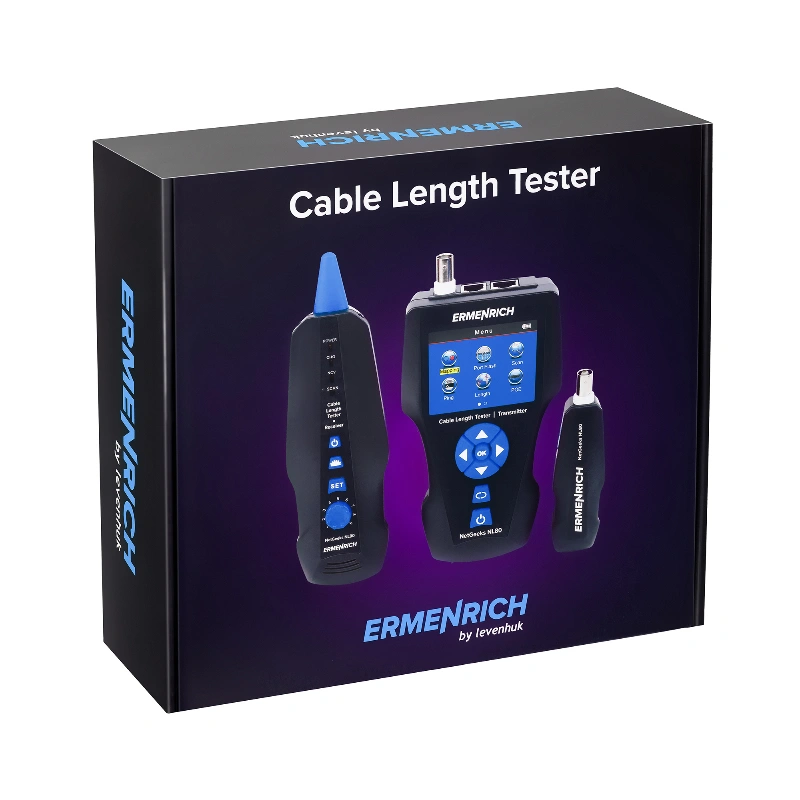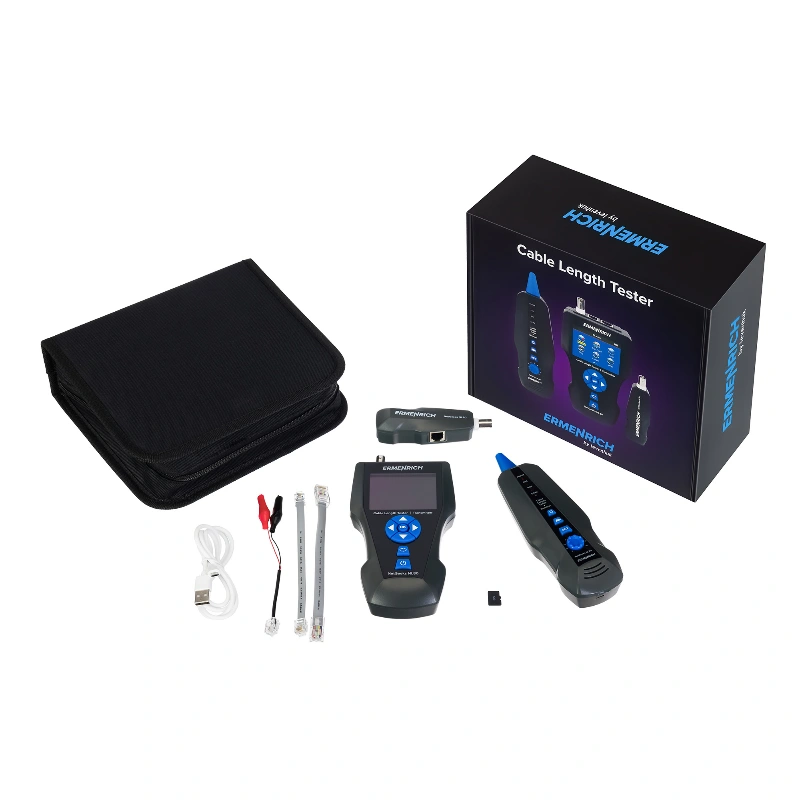 Ermenrich NetGeeks NL80 – это мощный комбо-прибор, который объединяет в себе точный измеритель длины кабеля и универсальный тестер. Благодаря технологии импульсной рефлектометрии (TDR) он без труда определяет длину линии до 1000 метров с минимальными погрешностями.