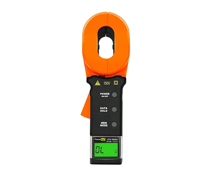 Прибор охватывает широкий диапазон измерения сопротивления постоянного тока — от 0,01 Ом до 1000 Ом, что позволяет использовать его как для проверки высокоэффективных заземлителей, так и для анализа контуров с повышенным сопротивлением. Дополнительно КТЗ-1630/2 способен измерять переменный ток утечки в диапазоне от 0 до 20 А, что делает устройство универсальным инструментом для комплексной диагностики электрических цепей. Максимальный диаметр проводника, который можно охватить клещами, составляет 28 мм, что соответствует большинству стандартных заземляющих проводников и шин.