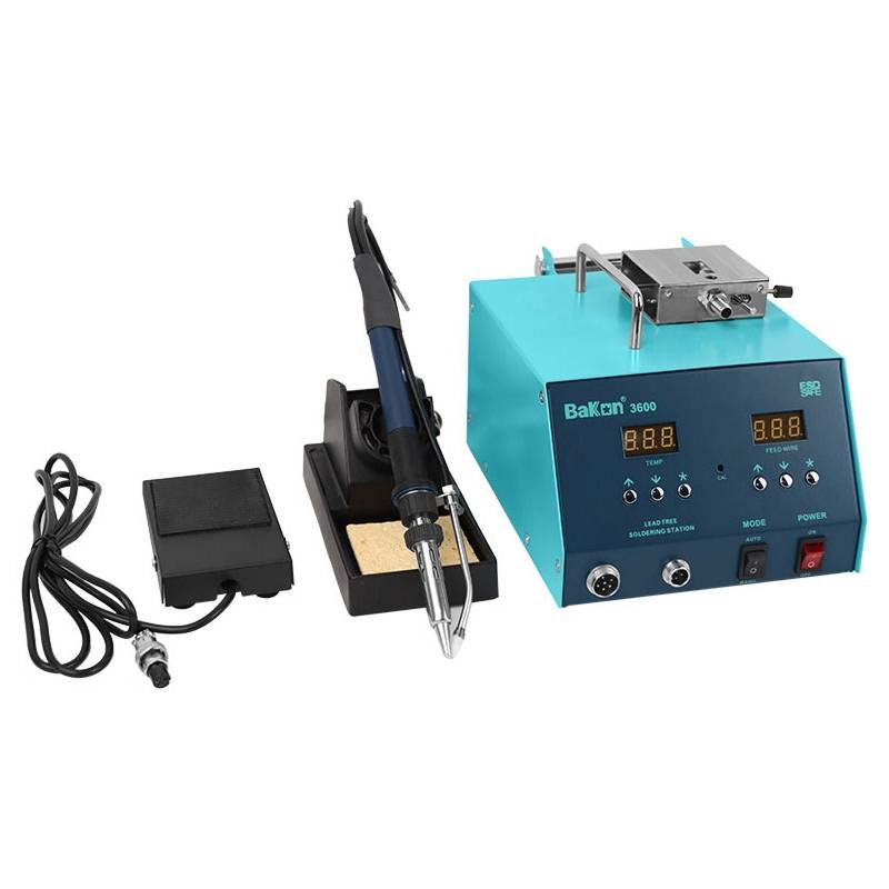 Паяльная станция BAKON BK3600 с автоподачей припоя представляет собой современное и высокотехнологичное устройство, предназначенное для профессиональной пайки и ремонта электронных компонентов. Одним из ключевых преимуществ этой модели является высокая максимальная мощность в 150 Вт, что обеспечивает быстрый разогрев и стабильное поддержание необходимой температуры в широком диапазоне от 50 °С до 600 °С. Такая температурная гибкость позволяет работать как с деликатными микросхемами, требующими низкотемпературной пайки, так и с более массивными элементами, нуждающимися в интенсивном нагреве.