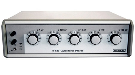 Декадный магазин ёмкостей специально предназначен для поверки ёмкостных диапазонов мультиметров и RCL-метров. Ввиду своей универсальности он может использоваться в метрологических лабораториях, сервисных центрах и на производственных линиях, где требуется дистанционное управление ёмкостью. Основными конструктивными элементами декадного магазина M520 являются реле с высокой допустимой нагрузкой по току и конденсаторы с полипропиленовым диэлектриком.