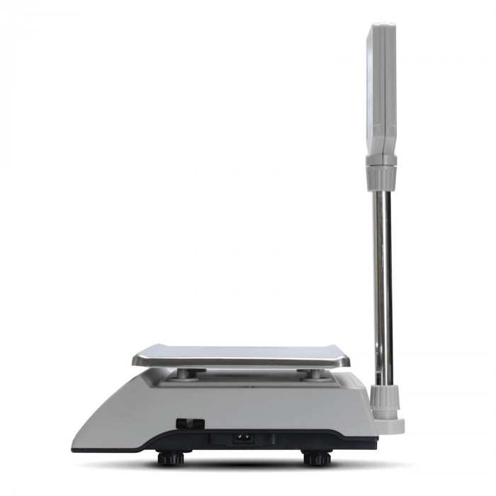 Дисплей весов выполнен на основе технологии LED и имеет 16 разрядов индикации, что обеспечивает четкость и удобочитаемость информации даже при слабом освещении. Наличие стойки для дисплея позволяет разместить его на уровне глаз оператора и покупателей, что повышает комфорт использования и способствует прозрачности торгового процесса. Весы измеряют массу в килограммах, что является стандартом для большинства торговых операций и удобно для пользователей.