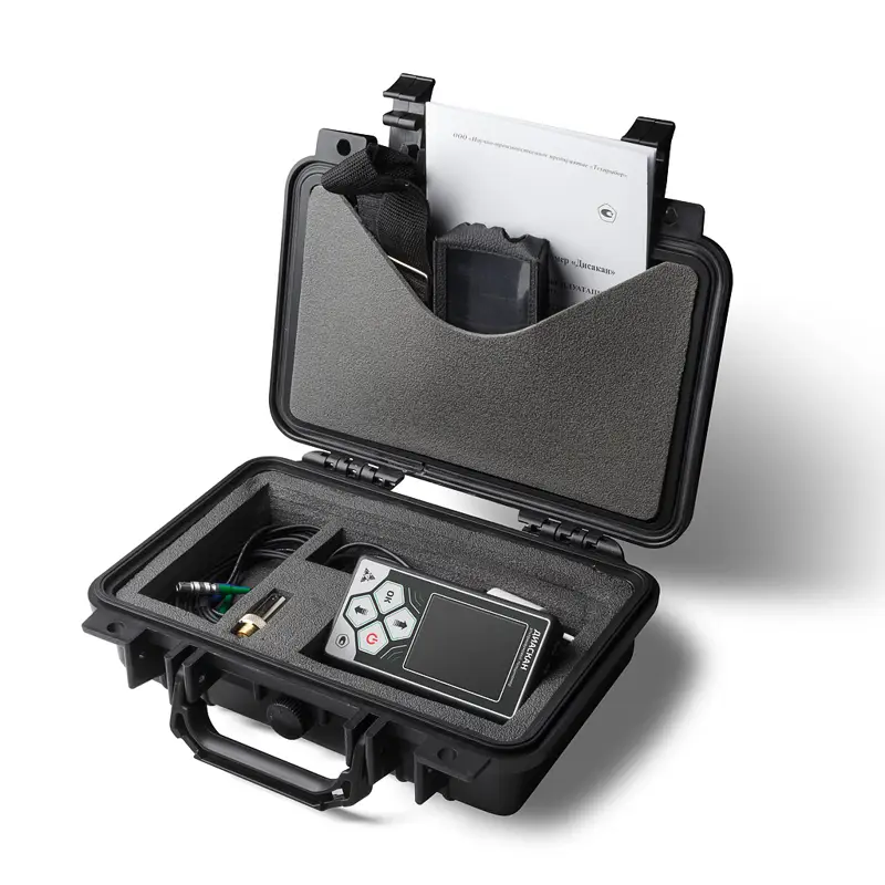 Ультразвуковой толщиномер "Техно‑НДТ ДИАСКАН" с преобразователем 10 МГц - высокоточный прибор для неразрушающего контроля толщины металлических и иных изделий в сложных производственных и полевых условиях. Используя эхо‑импульсный метод, устройство измеряет время прохождения ультразвукового сигнала через материал и на основе известной скорости волны вычисляет толщину с минимальной погрешностью.