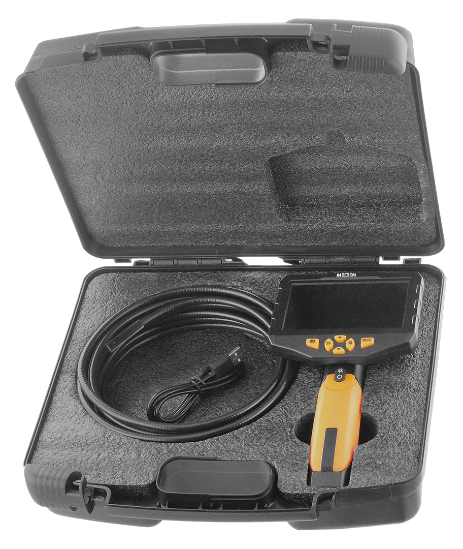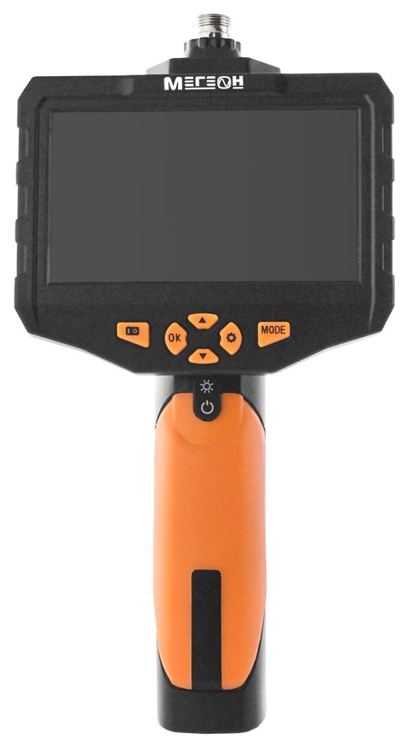 МЕГЕОН 33500- 58D - новинка в модельном ряду цифровых видеоскопов, предназначенный для решения задач в быту и промышленности. Эндоскоп представляет собой устройство для исследования и осмотра скрытых от глаза полостей с возможностью сохранения видеоизображения со звуком на встроенный носитель SDHC 32Гб. Помимо этого предусмотрено получение цветных изображений с помощью фотографий. Зонд диаметром 6,9 мм и длиной 5 метров имеет полужёсткую конструкцию на конце которого поместились две перпендикулярно направленные камеры. Подсветки оснащены яркими светодиодами со ступенчатой регулировкой яркости, которые обеспечивают работу в условиях полного отсутствия освещения. Большой ЖК-дисплей с разрешением 854х 480 и диагональю 4,3' отчётливо отобразит всё происходящее перед объективом. Дополнительно в корпусе предусмотрена подсветка с высокой интенсивности свечения, которая с лёгкостью заменит фонарик. Преимущества изделия по достоинству смогут оценить профессионалы и любители.