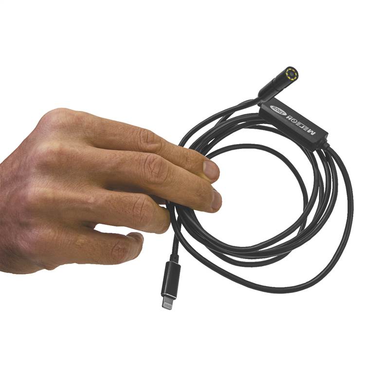 МЕГЕОН 33026 – это многофункциональный видеоскоп с камерой диаметром 8 миллиметров, мягким зондом длиной 2 метра, оснащён Lightning разъёмом, позволяющим подключать его к устройствам Apple iPhone и iPad. Видеокамера высокой чёткости с защитой (IP68), со встроенной регулируемой светодиодной подсветкой позволяет работать даже в плохоосвещенных местах. Устройство не требует источника питания, так как подключается к Lightning разъёму устройства и питается от него. Идеально подойдет для проведения визуального осмотра скрытых полостей, труднодоступных областей, внутренних частей различного оборудования без повреждения и предварительного демонтажа других элементов. Длина измерительного зонда позволяет производить визуальную ревизию систем вентиляции и трубопровода. В комплекте поставки: съёмное зеркало (перископ) для обзора по бокам, магнитный держатель и крючок для возможности извлечь упавшую деталь. В используемом ПО возможна видео- и фотофиксация изображения. Прибор найдёт широчайшее применение там, где в труднодоступных местах нужно увидеть без дополнительной разборки.